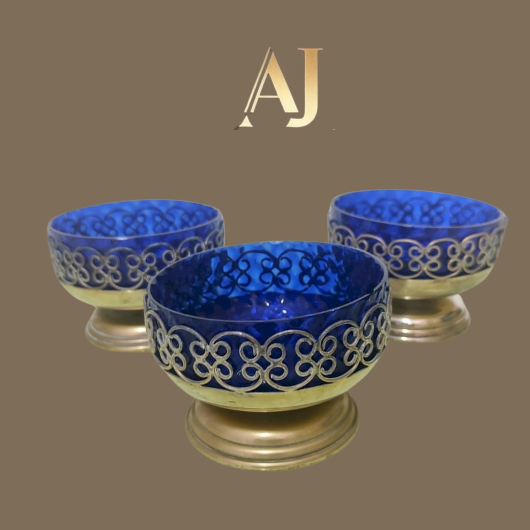 3 taças com vidro azul cobalto