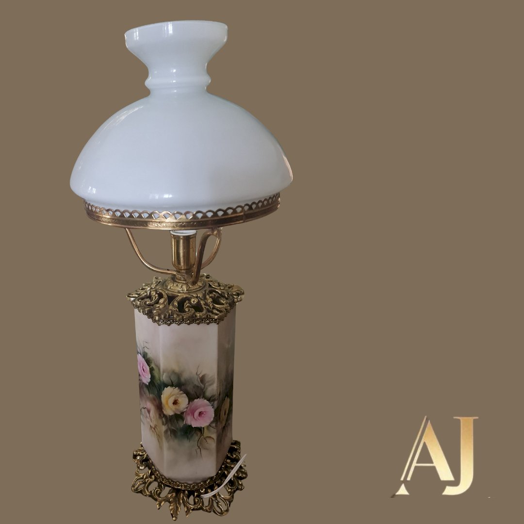 Abajur porcelana com brinze - ointado a mão