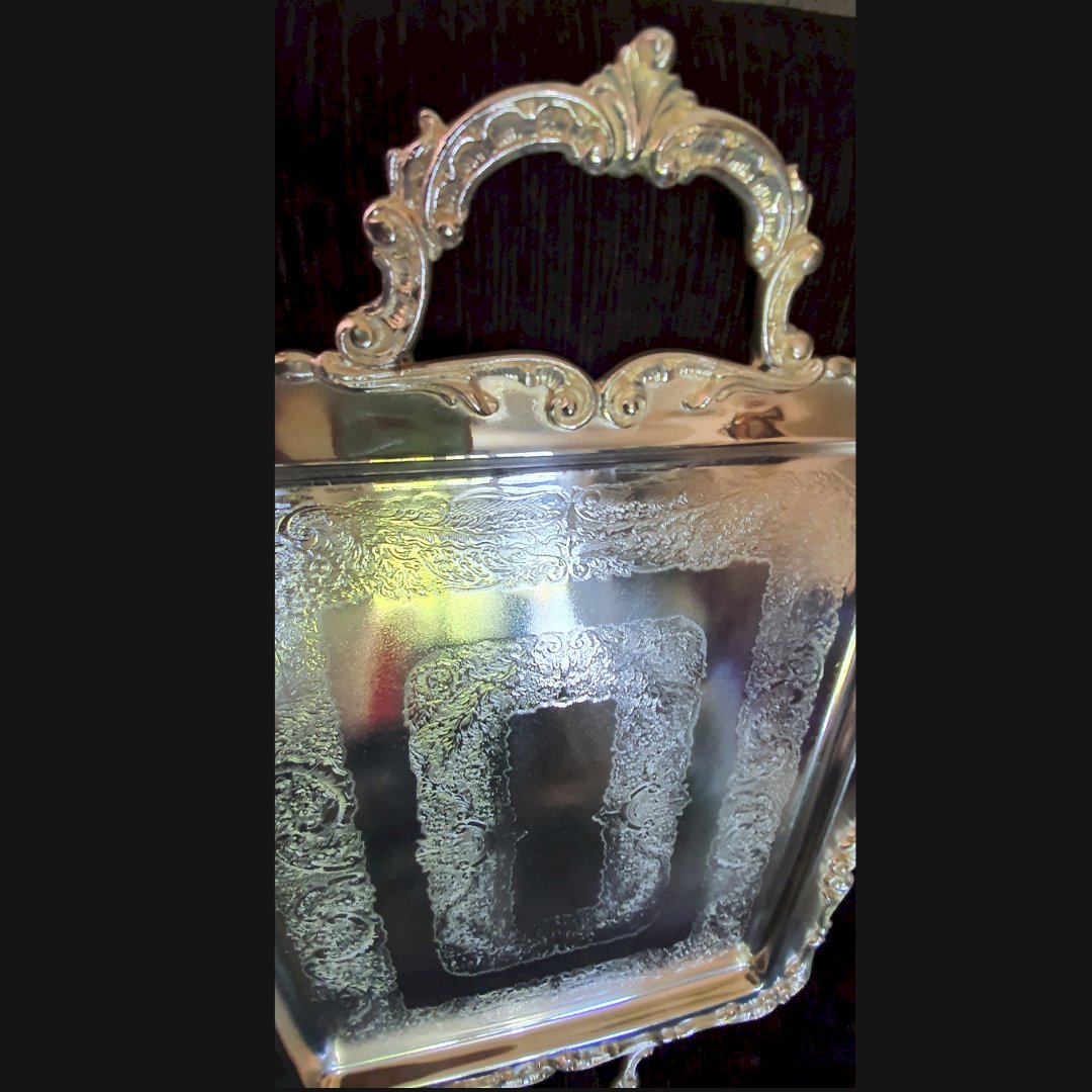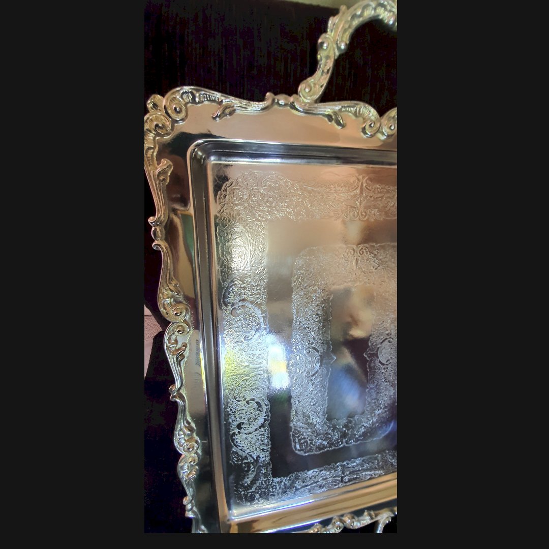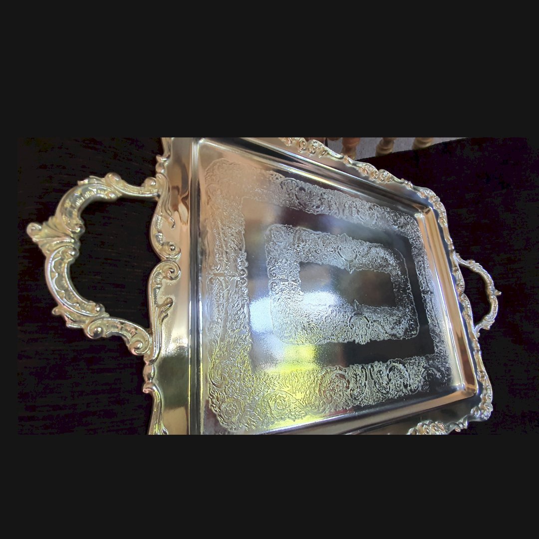 Bandeja com desenhos banhada a prata Ref 030