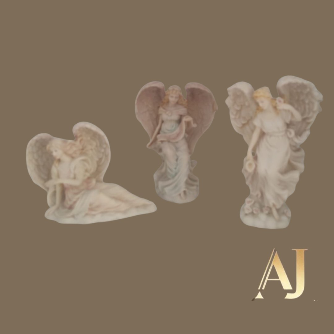 Conjunto com 3 Anjos Seraphin classics: Evangeline alt 12cm, Laurice alt 17cm e Rosalie alt 17cm.