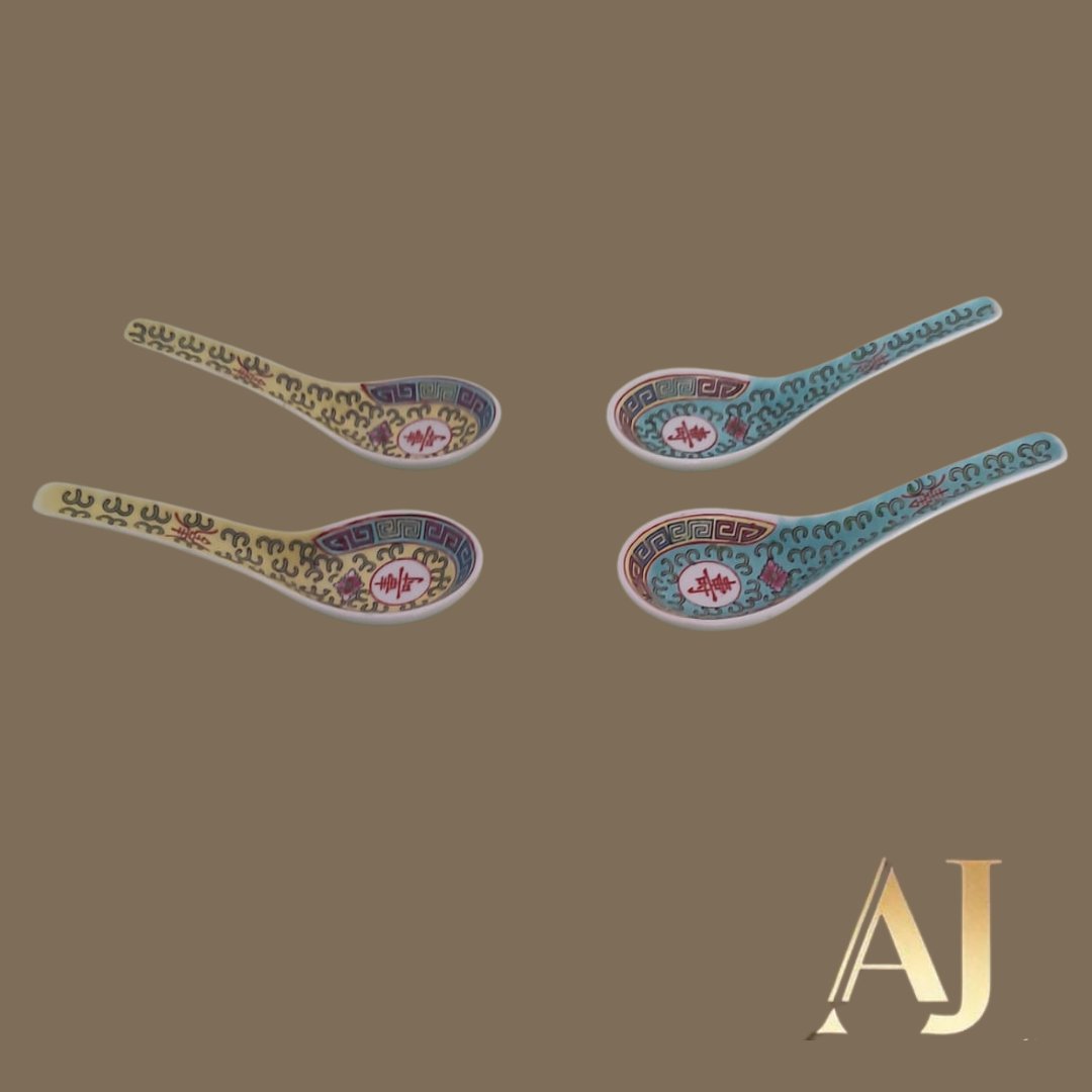 Conjunto com 4 colheres de sopa de porcelana chinesa