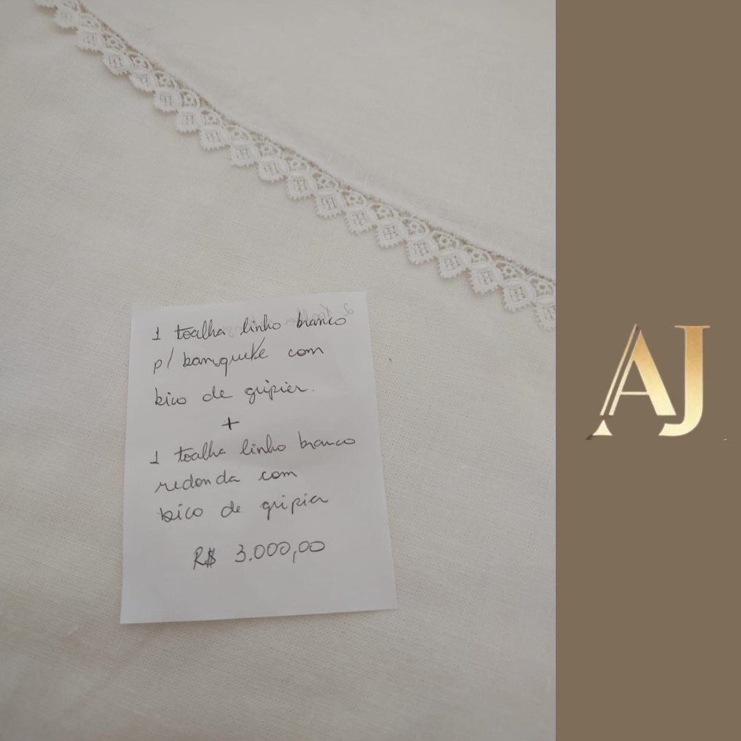 1 toalha  de linho branc0 para banquetea, com bico de gripier