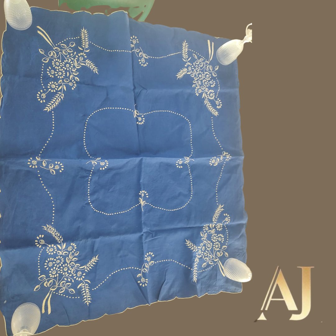 Conjunto de toalhas de linho azul com bordado branco:(5 peças)