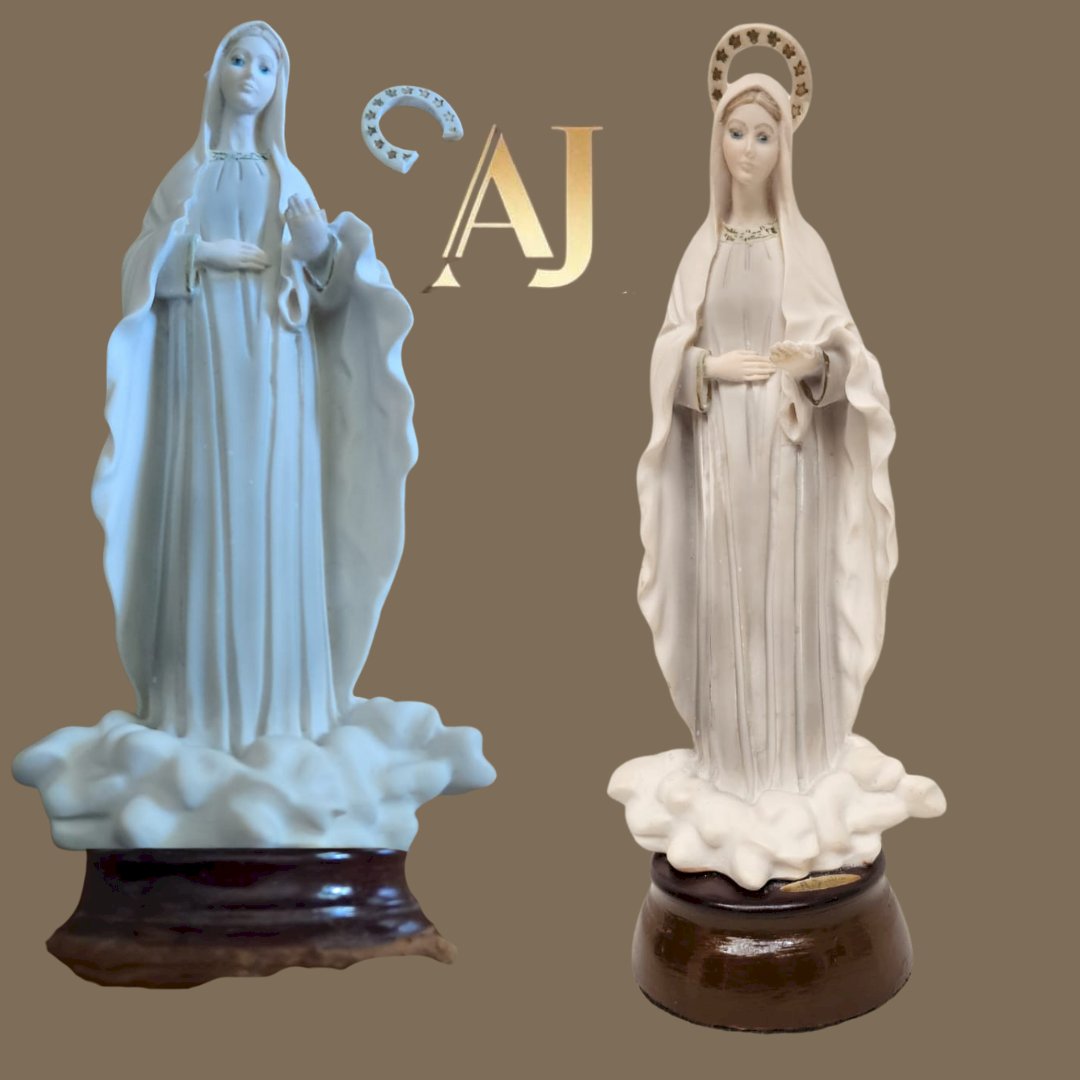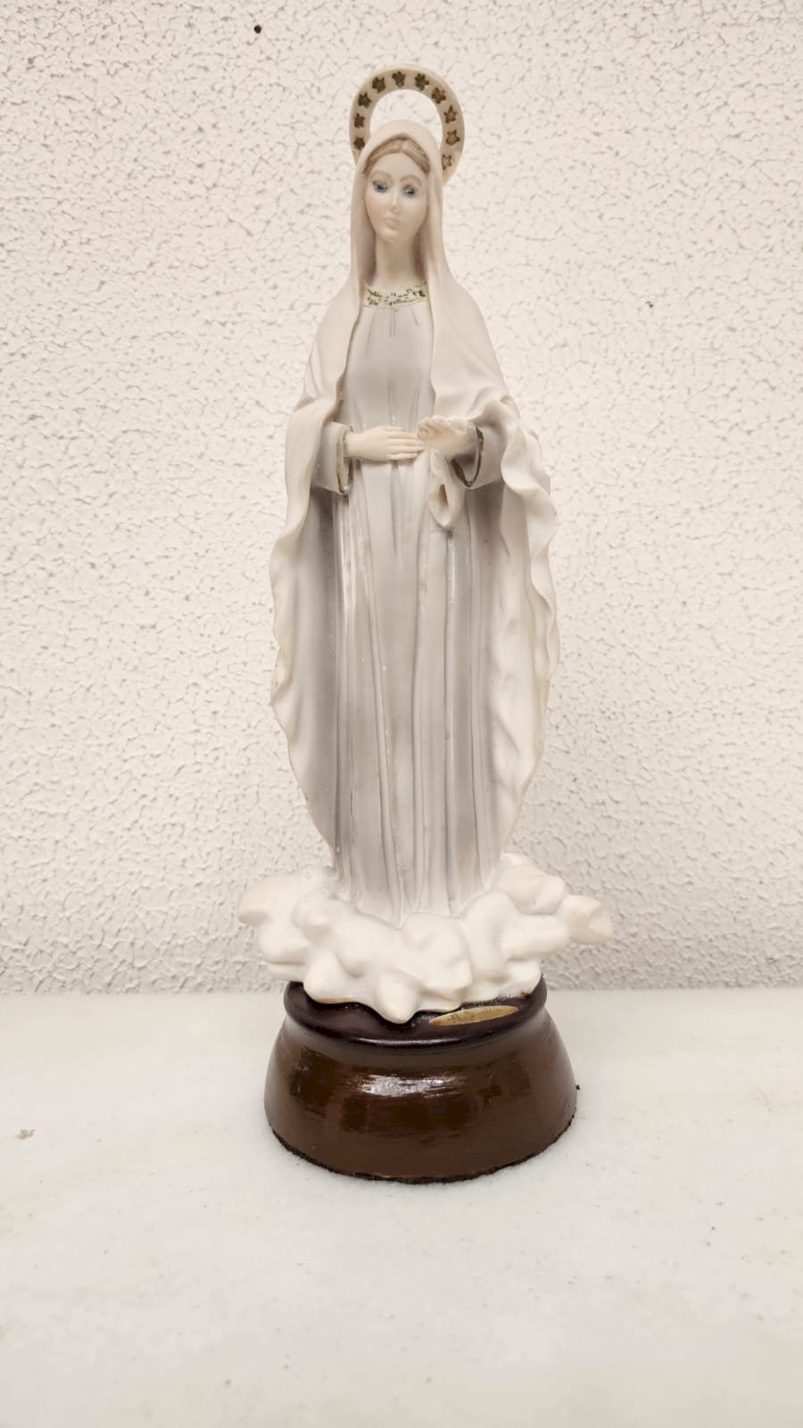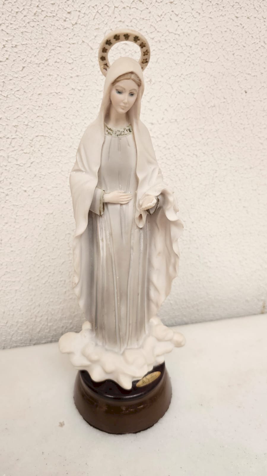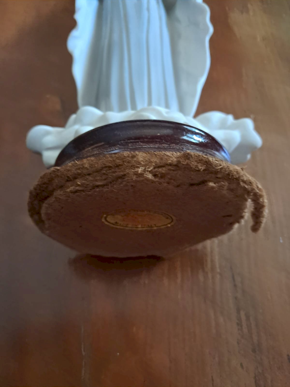 medindo 27 cm - reconstrução do dedo da mão esquerda, junção de partes da coroa de.estrelas, remoção de mdf na base que está estufado, acabamento da base com massa plastica e fixação de feltro no fundo