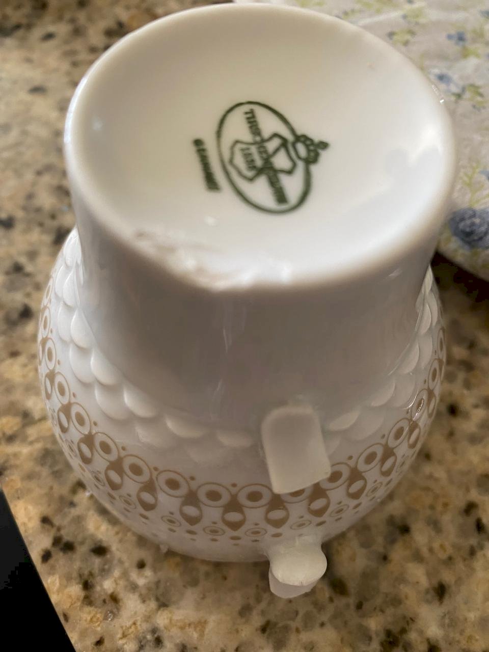 04. *Pires* = de porcelana para chá -   Colagem com Reconstrução das partes quebradas com remoção de marcas,  repintura nas