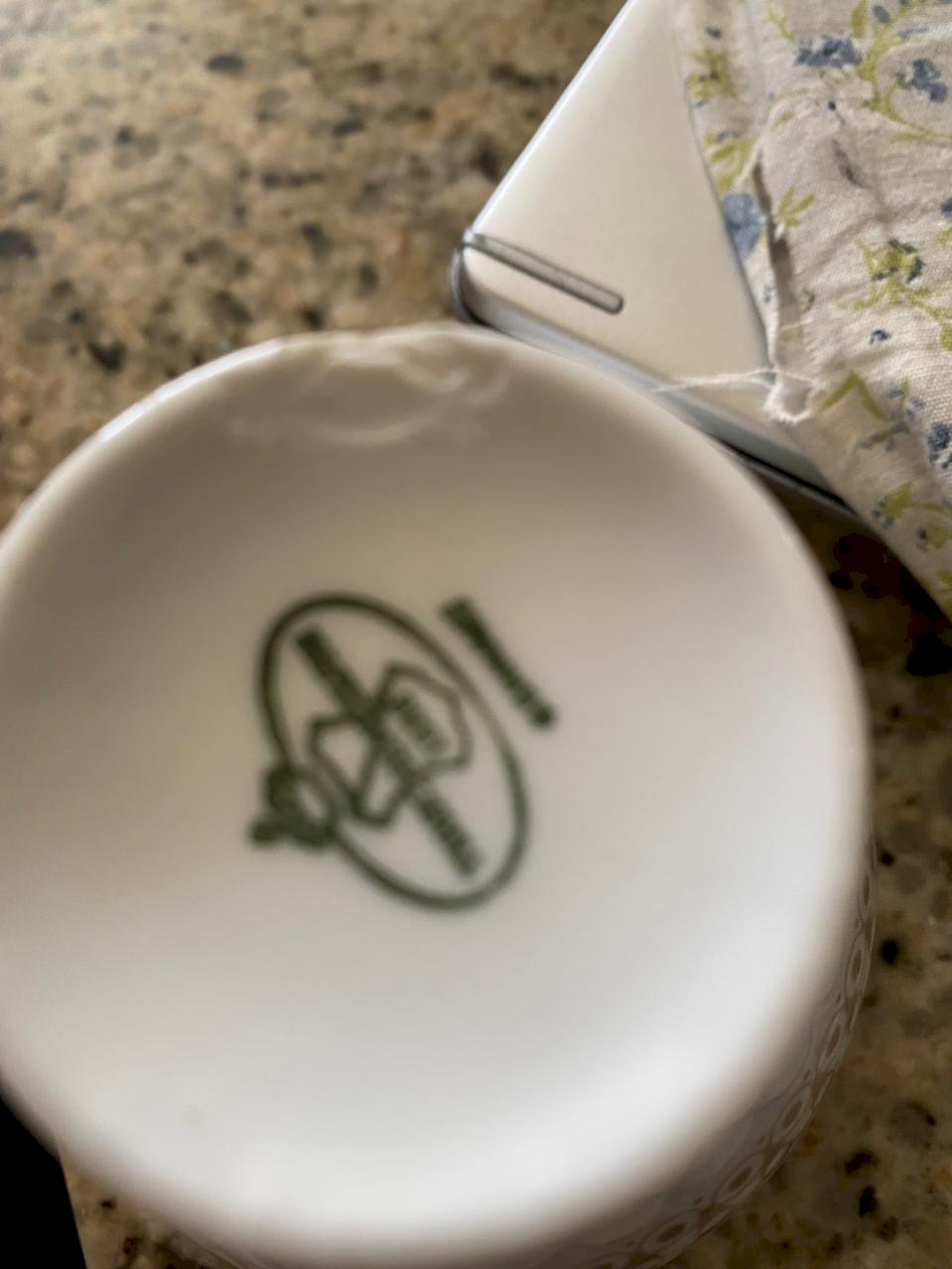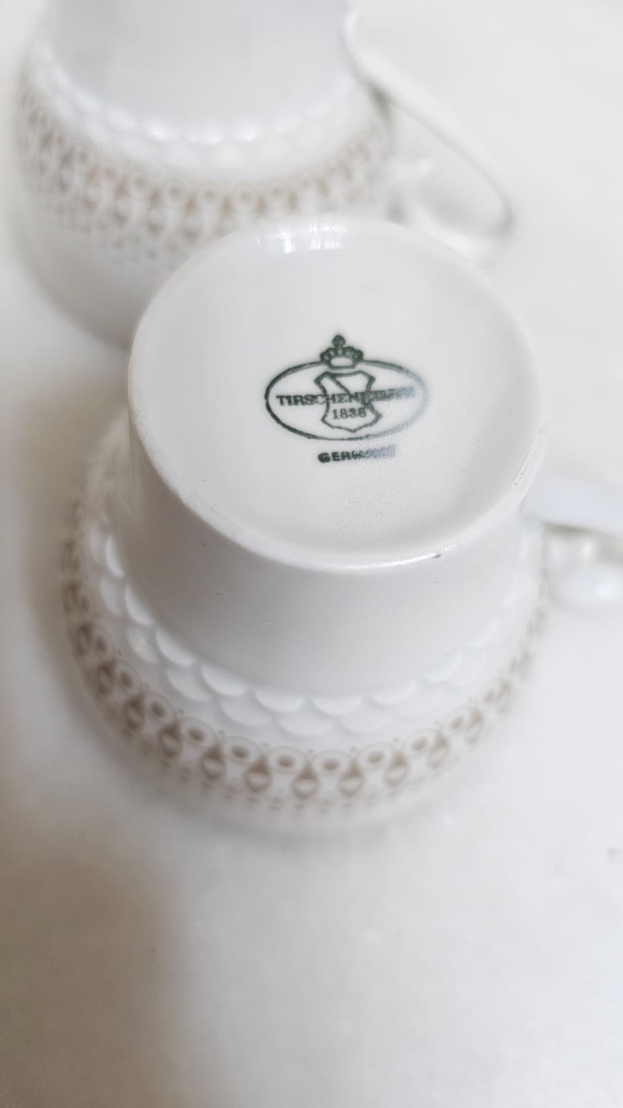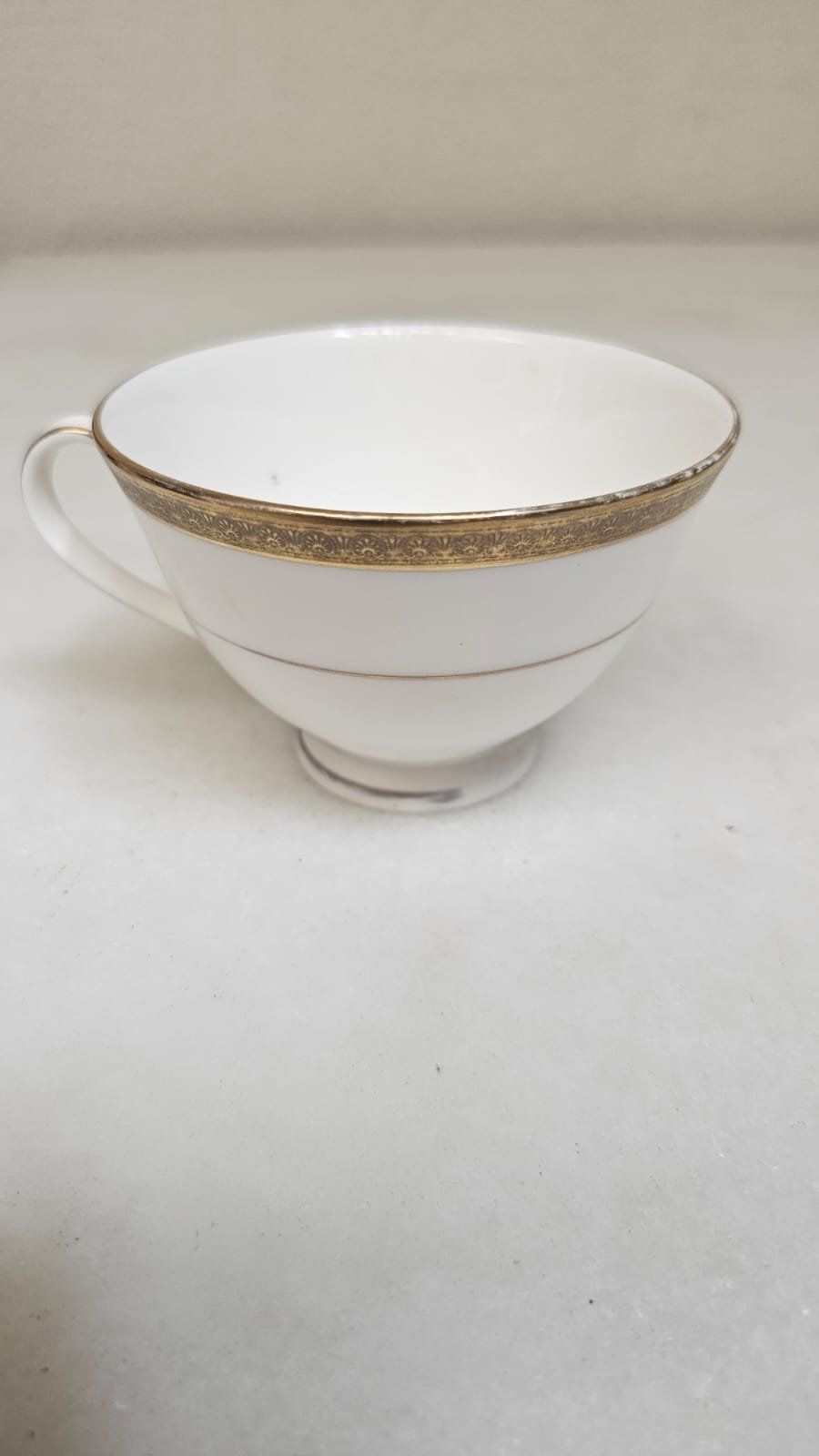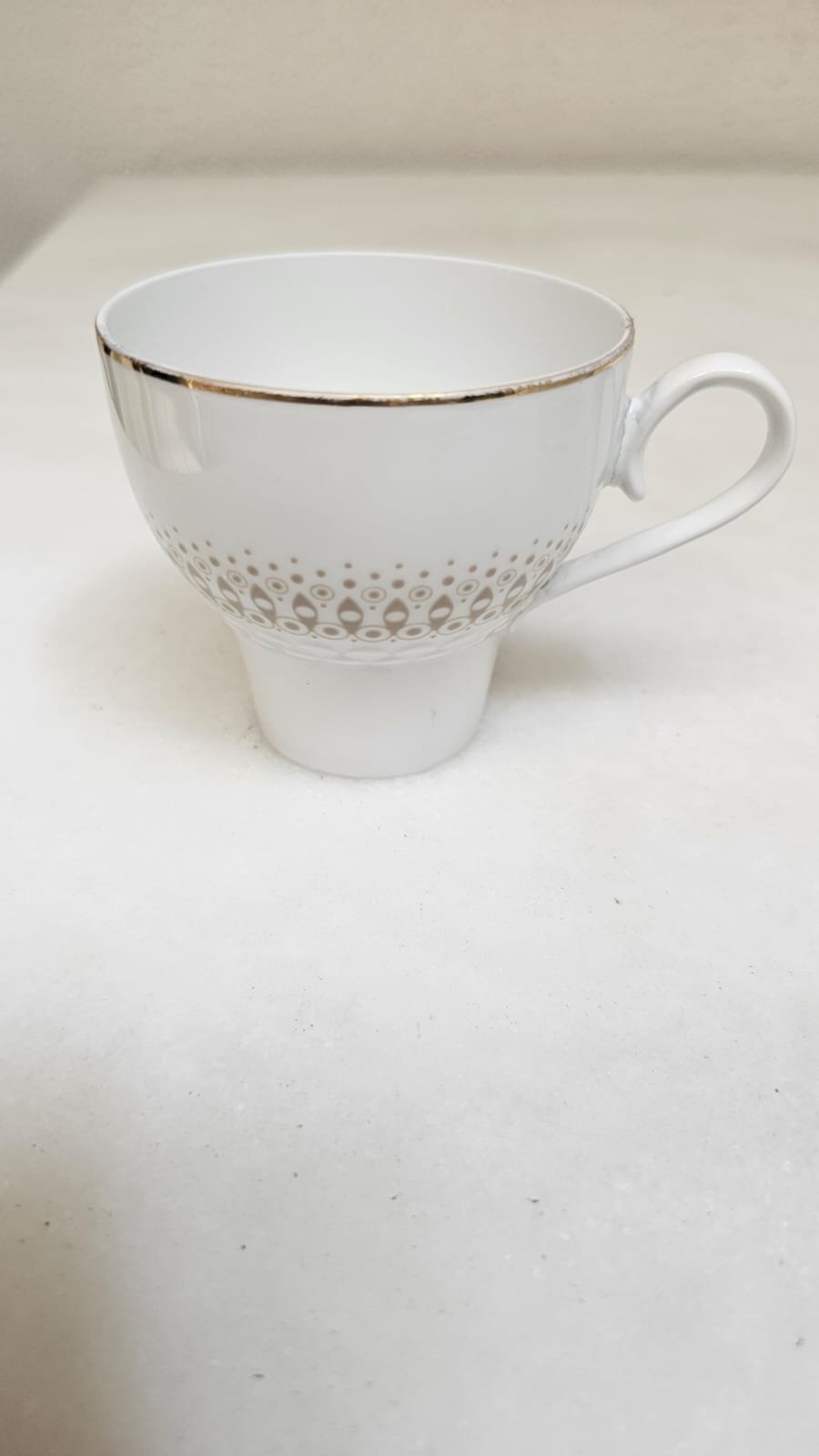 1. *Xícara* - de porcelana para chá -  Reconstrução do fundo, com remoção de marcas, repintura nas linhas de colagem com vitrificação a frio