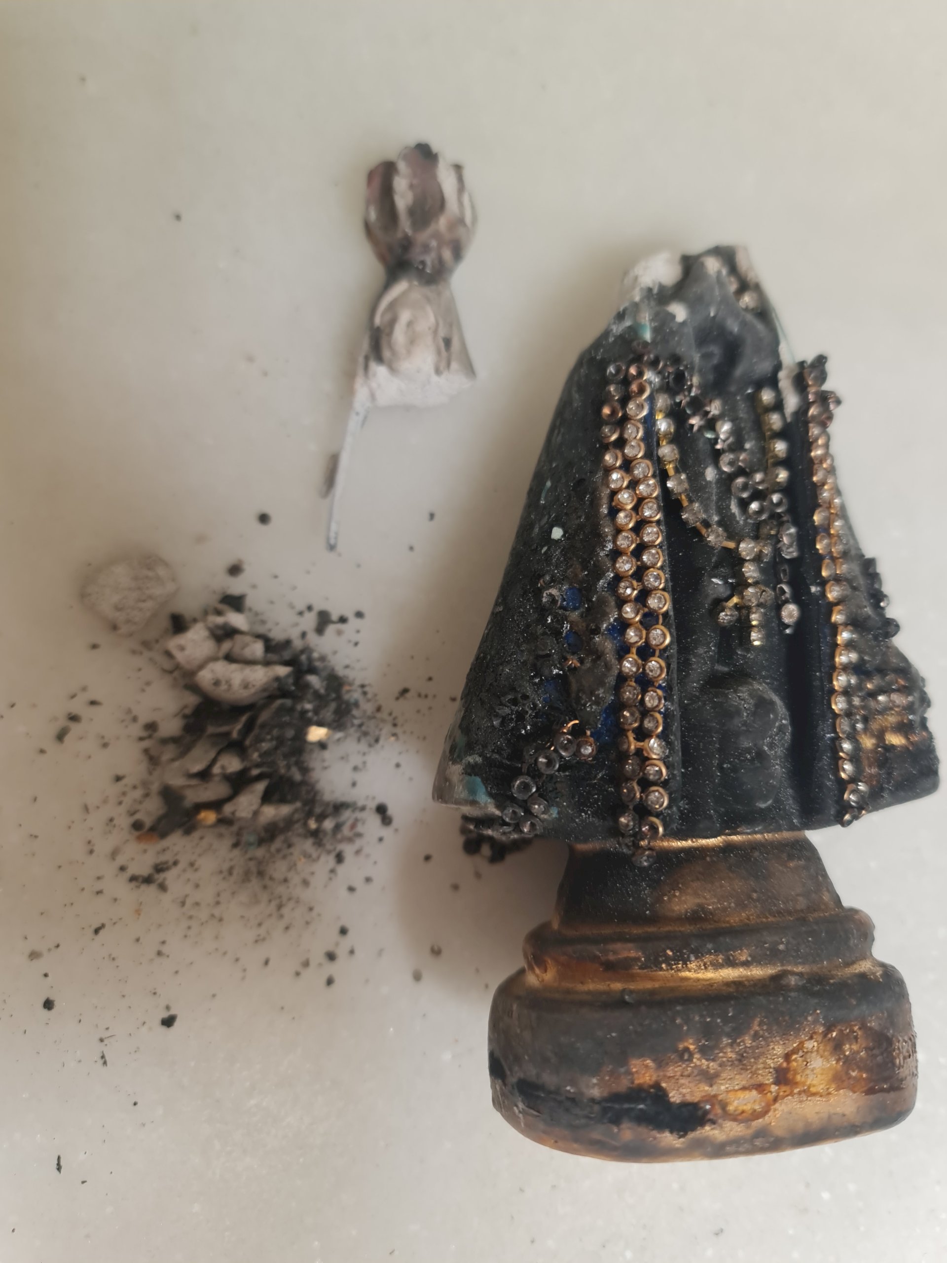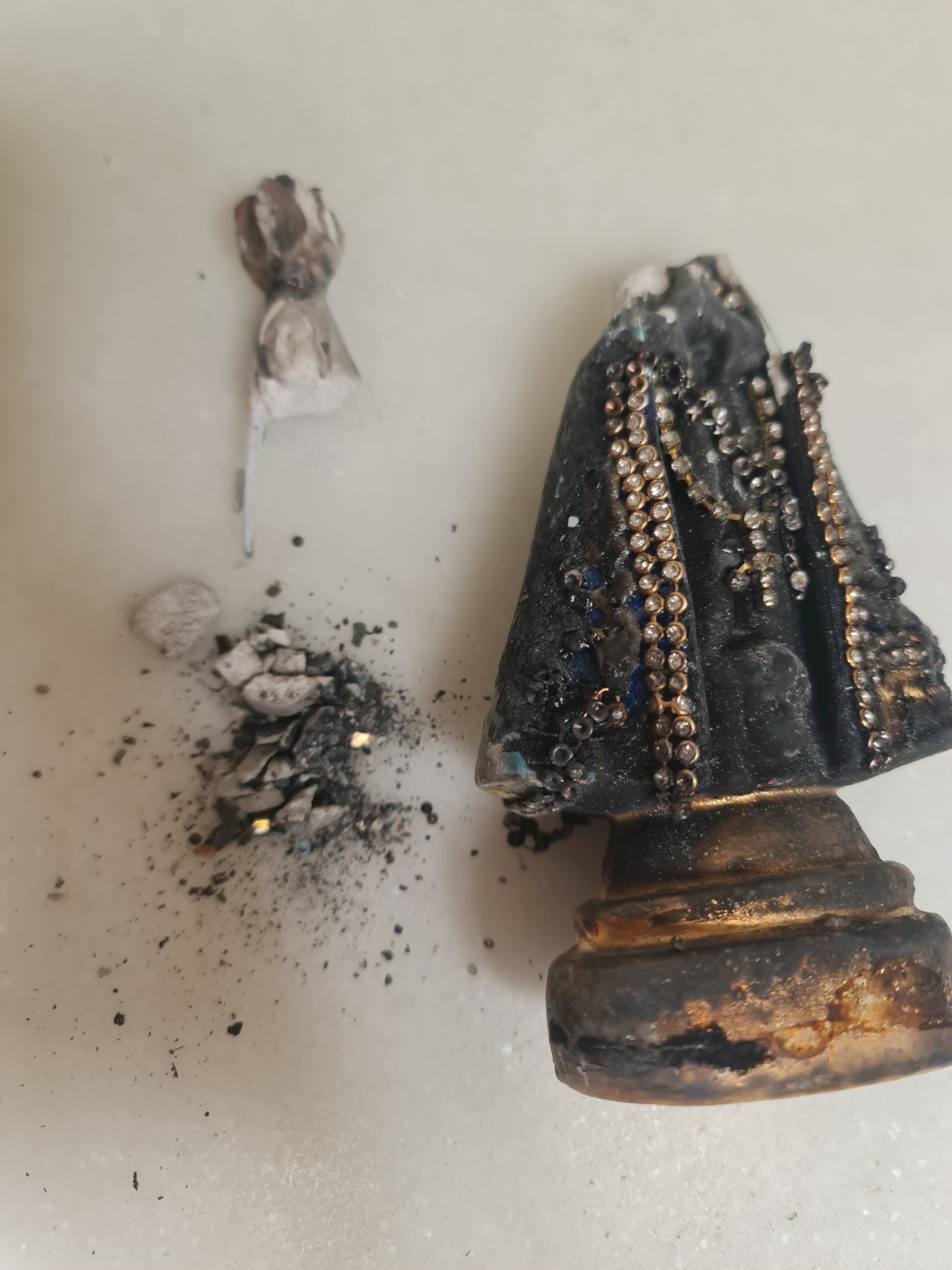 e)    Repintura da veste, manto e peles (mãos e rosto)  na cor preta