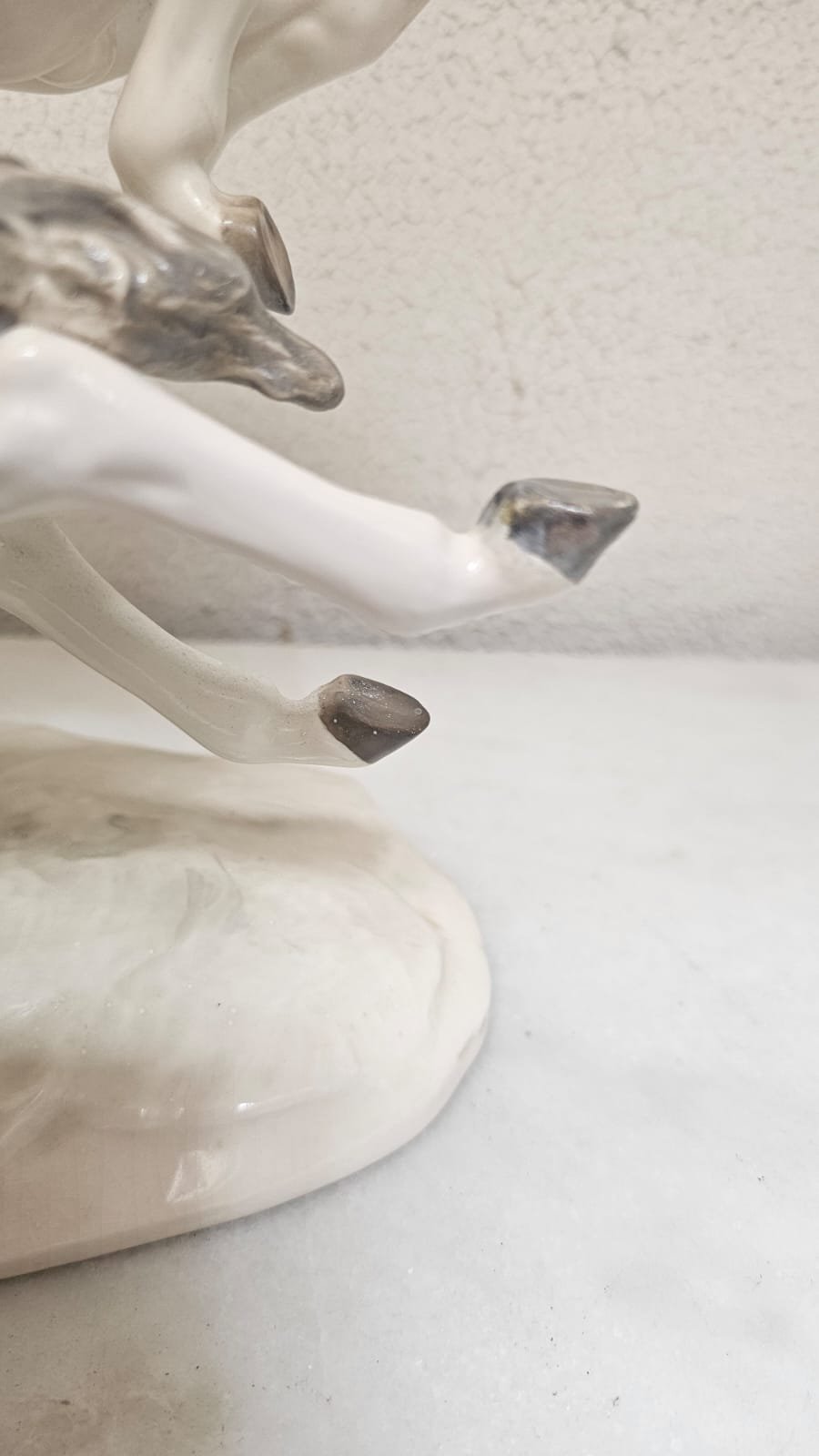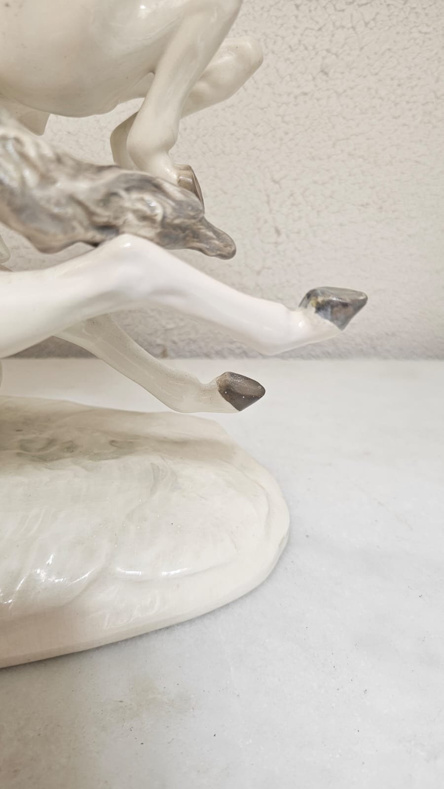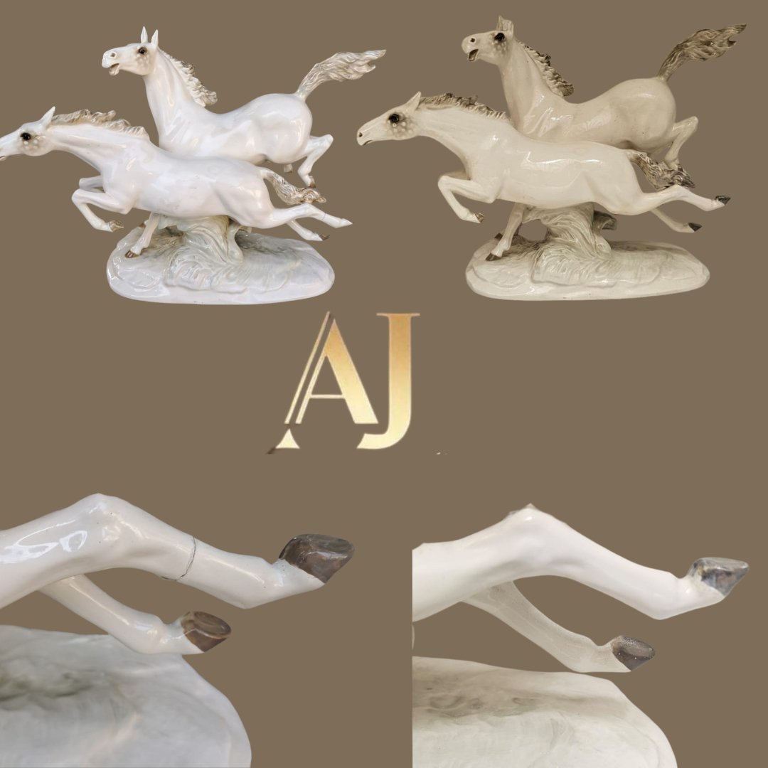 descolagem da pata que colaram com batente, remoção de cola que escorreu, recolagem com remoção de marcas, repintura nas linhas de colagem com vitrificação