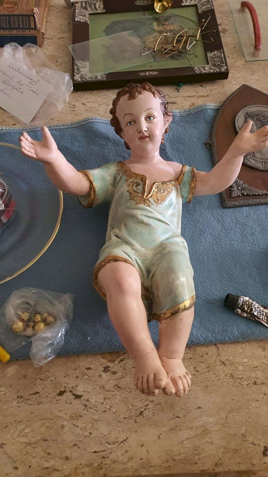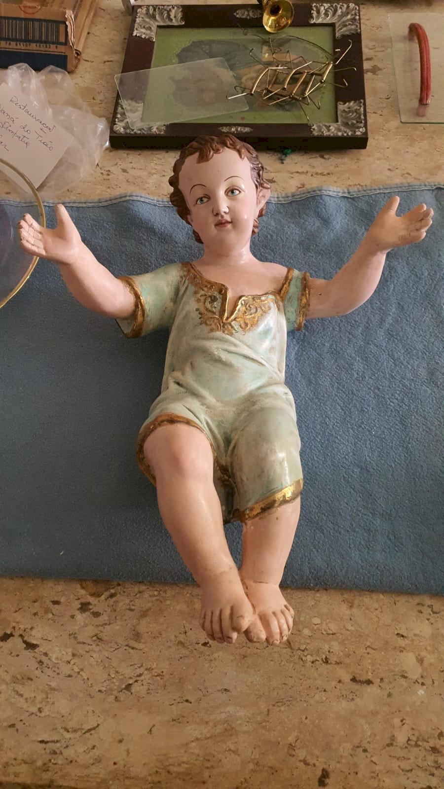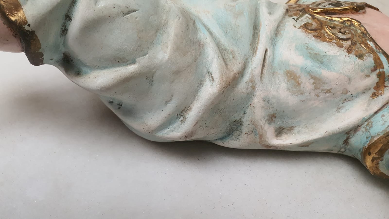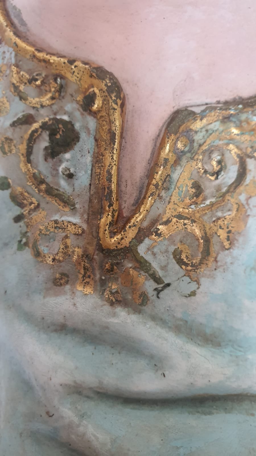 g) Reaplicação do dourado no contorno da veste e bordados