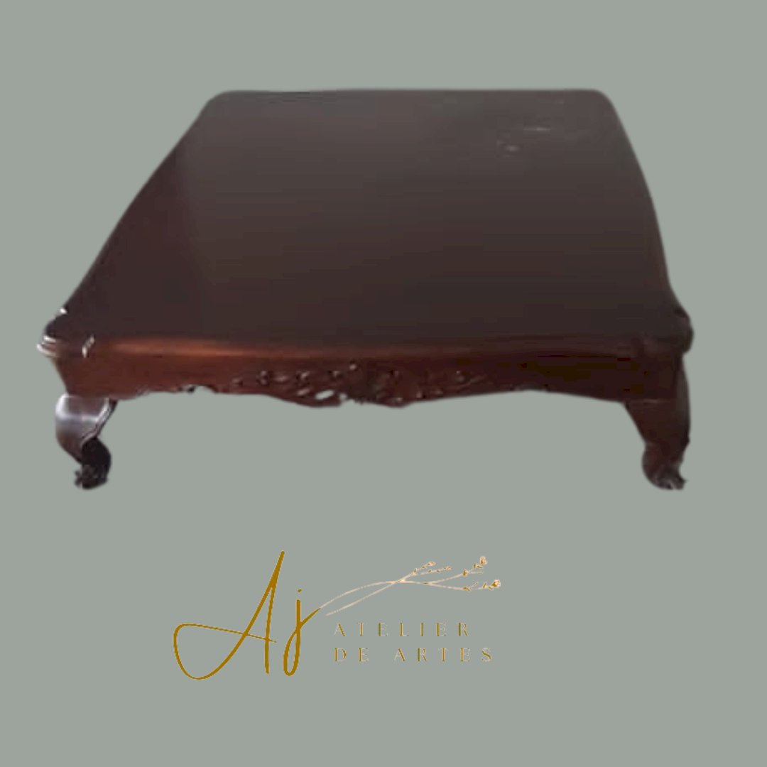 *MESA DE CENTRO* quadrada, antiga, em madeira nobre com entalhes