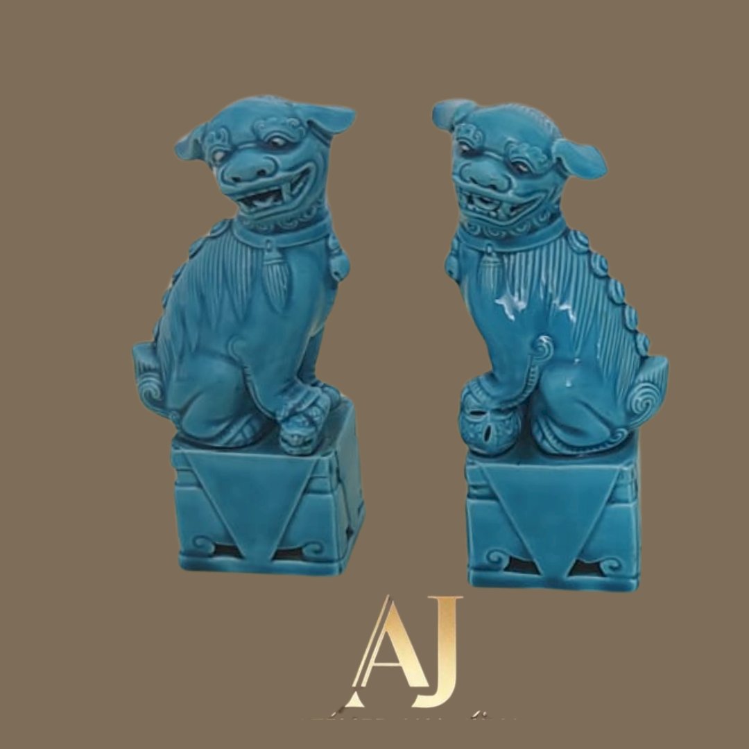Par de cão de Fó porcelana chinesa turquesa com altura de 14,5 cm por R$ 350,00