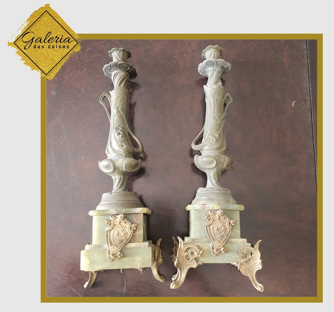 Par de Castiçal em estilo Art Nouveau em bronze e mármore